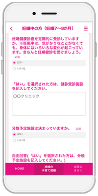 南幌町は『母子モ』の追加機能である「質問票サービス」と「オンライン予約サービス」を伴走型支援事業に活用し、妊娠8カ月アンケート、新生児訪問の事前アンケートの提出が、『母子モ』を通じて時間や場所を問わず簡単に実施できるようになります。