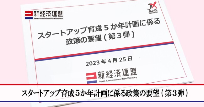 一般社団法人新経済連盟(所在地:東京都港区、代表理事:三木谷浩史)は、2023年4月25日、「スタートアップ育成5か年計画に係る政策の要望(第3弾)」を公表しました。