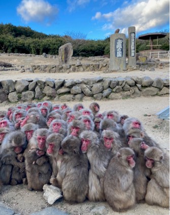 両備グループ(事務局所在地:岡山県岡山市北区下石井、両備グループ代表兼CEO:小嶋光信)の国際両備フェリー株式会社(本社:岡山県岡山市中区新築港9-1)と瀬戸内観光汽船株式会社(本社:岡山県備前市日生町寒河2570-26)では、岡山・日生・高松と小豆島を結ぶ3航路を運航しております。今回は、小豆島の冬の風物詩として、寒さが厳しくなると見ることができる「銚子渓・お猿の国」の猿団子をご紹介させていただきます。ぜひ冬のこの時期にしか見られない心和む猿たちの可愛いらしい様子を楽しみに、船に乗って小豆島へ足を運んでみませんか。