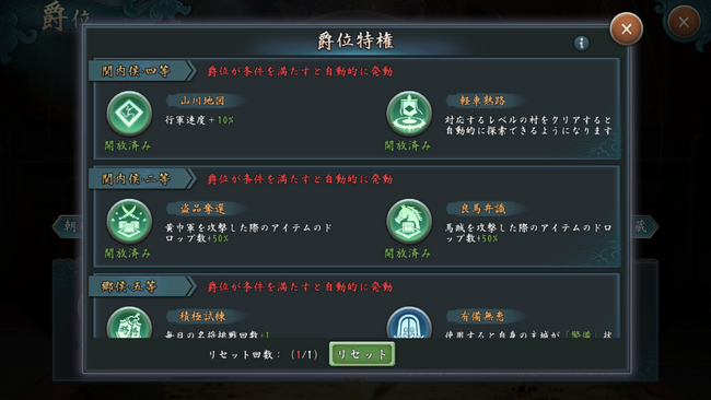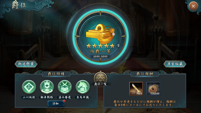 爵位レベルは懸賞任務をクリアすると上昇させることができます。