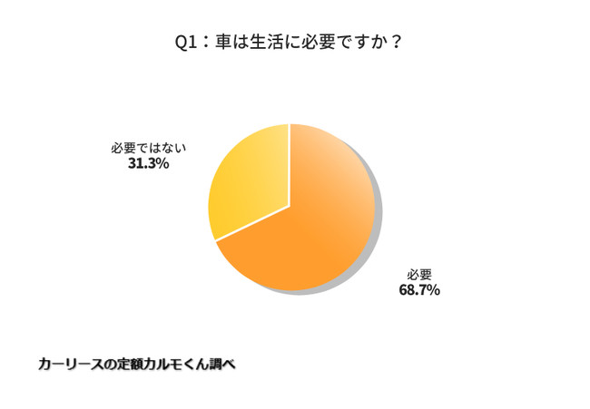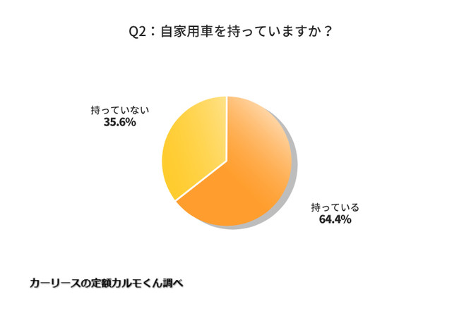 Q1で「車は生活に必要」と回答した方に自家用車を持っているかどうかを聞いたところ、64.4%は「持っている」と回答し、35.6%は「持っていない」と回答しました。これにより、3人に1人以上が、生活に車が必要なのに車を持っていないということがわかりました。