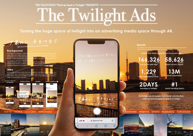 外資系広告代理店のI&S BBDO(代表取締役社長:永井祥裕、本社:東京都中央区)は、釜山国際マーケティング広告祭「MAD STARS 2023」において、TBSテレビ火曜ドラマ「夕暮れに、手をつなぐ」のSNSプロモーションとして当社が企画制作に携わった「夕暮れ限定AR(英題 : The Twilight Ads)」が、Design部門、Communication Design - Digital Designカテゴリーにおいて、BRONZE賞を受賞したことをお知らせいたします。