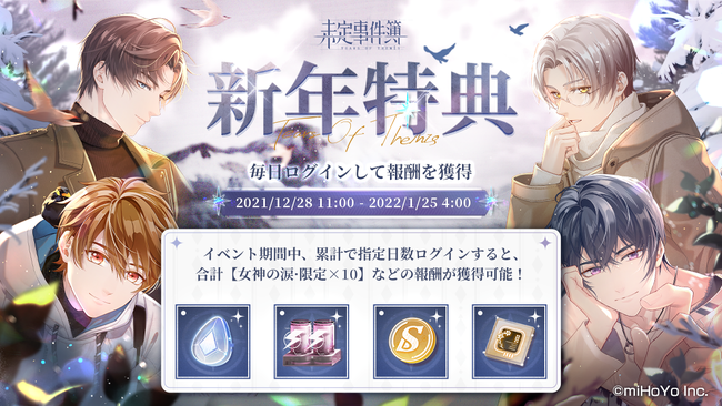 株式会社miHoYo(本社:東京都渋谷区、代表取締役社長:李 承天)は、女性向け恋愛ミステリーゲーム『未定事件簿』において、1月1日(土)より開催予定の期間限定イベント『スカディへ捧げる愛の詩』の予告PVを、12月27日(月)に公開いたしました。