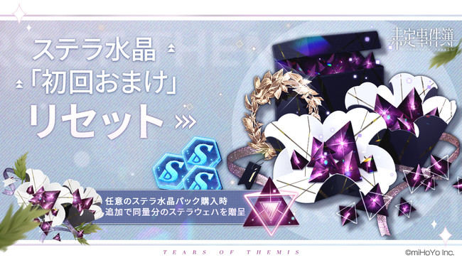 1月1日(土)より、新年特典としてショップのステラ水晶購入時の「初回おまけ」がリセットされます。いずれのステラ水晶パックを初回で購入すると、追加で同量分のステラウェハが贈呈されます。