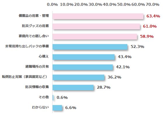 家庭内の防災対策として不十分に感じるもの最多回答は「備蓄品の用意・管理」