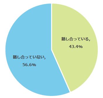 防災について子どもと話し合うことがあるか質問したところ、43.4%が「話し合っている」、56.6%が「話し合っていない」と回答しました。