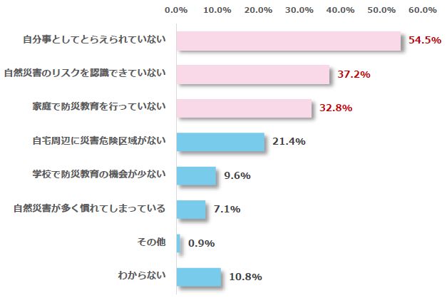 子どもの防災意識が低い理由、最多回答は「自分事としてとらえられていない」