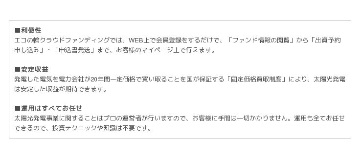 【太陽光投資×エコの輪クラウドファンディングの特徴】