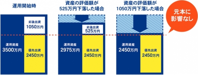 17号ファンドは、ひとつのファンドを優先出資部分と劣後出資部分に分け、損益の分配や金銭の返還に順位を設けたファンドです。