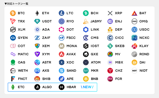このたび、当社のGinco Enterprise Walletでは、従来の対応通貨に加え、新たにETC、ALGO、HBARに対応いたしました。