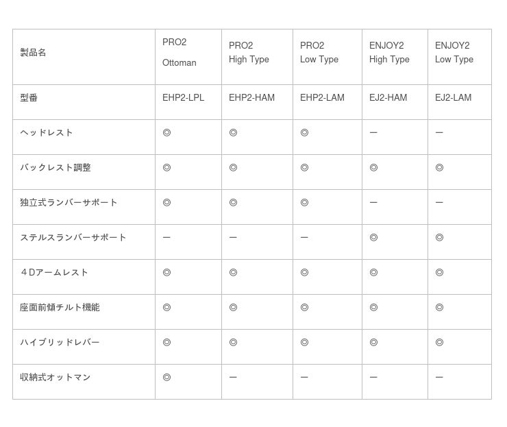 「PRO2 Ottoman」「PRO2 High Type」「PRO2 Low Type」「ENJOY2 High Type」「ENJOY2 Low Type」の5モデルを新しく販売いたします。