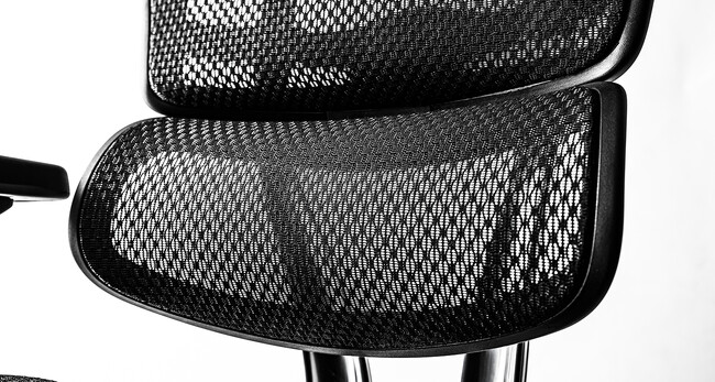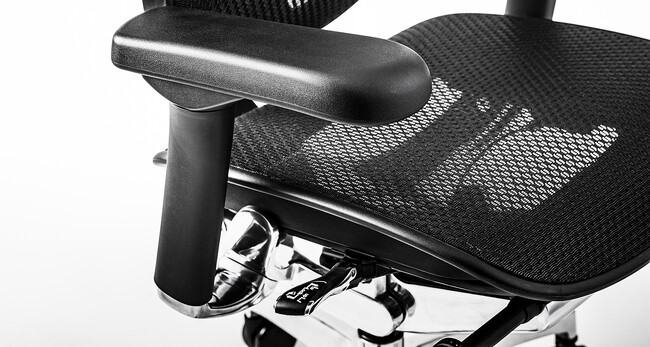 チェアを支える座面下の基盤の構造を見直しました。基盤内部には、航空機でも使用されている「グラスファイバープレート」を採用しました。粘度が高く、荷重によらず動作をスムーズに行います。