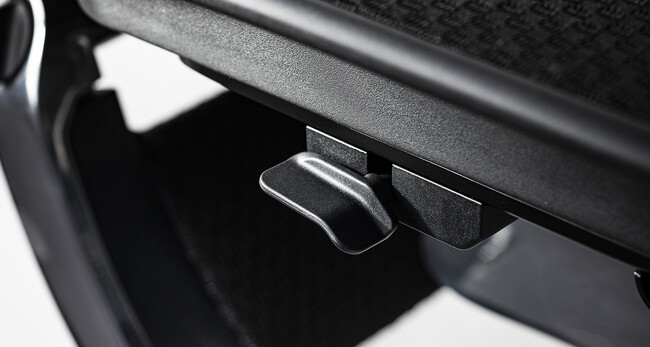 初代ErgohumanではPRO機種のみに搭載されていた"前傾チルト機能"を、全機種の標準機能として搭載します。テレワークの機会が増え、PC作業などをする時間も長くなっています。よりデスクワークに適した姿勢で、集中できる機能を加えました。また、座ったまま後傾姿勢・前傾姿勢の切り替えができるように設計を見直し、より直観的な操作性を実現しています。