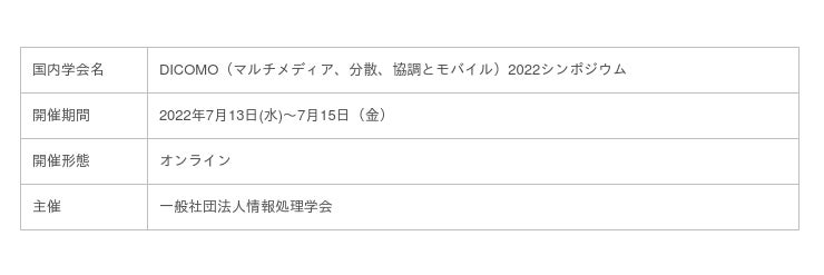 DICOMO(マルチメディア、分散、協調とモバイル)2022シンポジウム