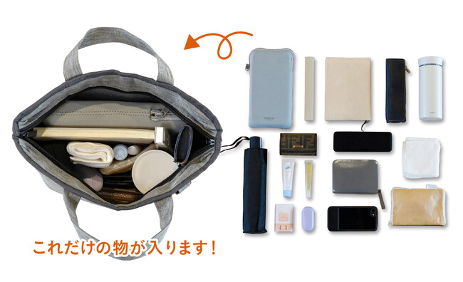 ランチグッズから文具まで、これだけの物を入れて持ち運び出来ます。
