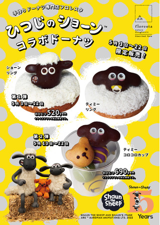 株式会社フロレスタ(本社:大阪市浪速区/代表取締役社長:辻尾吉厚)は、2022年5月3日(火・祝)から22日(日)の期間限定で店頭及びオンラインストアにて「ひつじのショーンコラボドーナツ」を販売します。