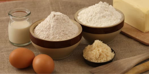 小麦粉・・・ポストハーベストの心配の少ない北海道産の小麦を使用。すべて江別製粉さんより仕入れています。食感と風味にこだわって薄力粉と全粒粉を配合しています。
