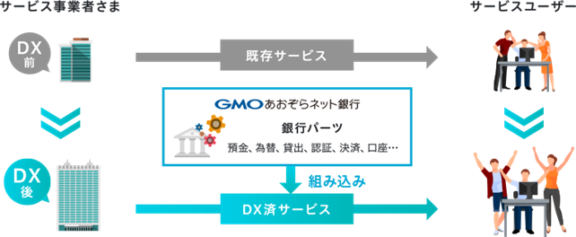 既存サービスに、当社の銀行パーツを組み込むことでDX加速をサポート!