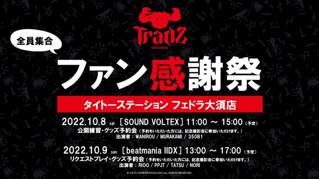 ※当日の入場上限などの情報に関しては、TradzのTwitter公式アカウント(@Taito_Tradz)にてお知らせいたします。