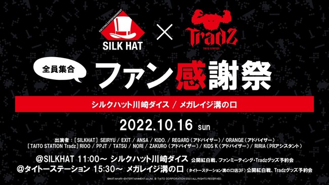 SILKHATおよびタイトーステーションそれぞれのお店に、SILKHATとTradzのメンバーが集結いたします。