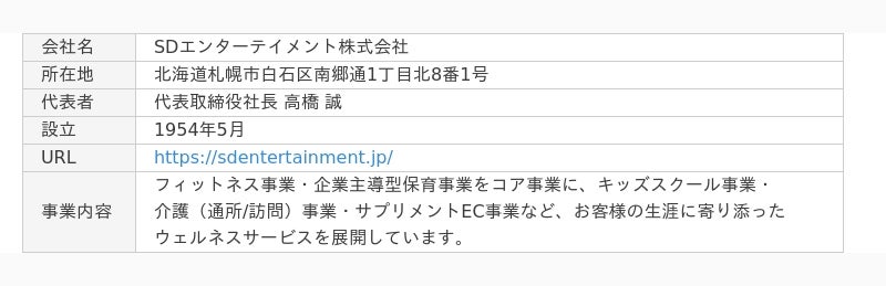 SDエンターテイメント株式会社(北海道札幌市、代表取締役社長 高橋 誠 東証スタ