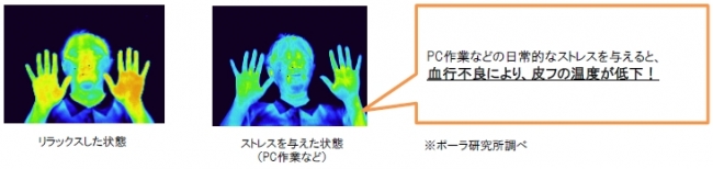 ストレスによる「肌荒れ」は、血行不良によって皮フ温が低下し、