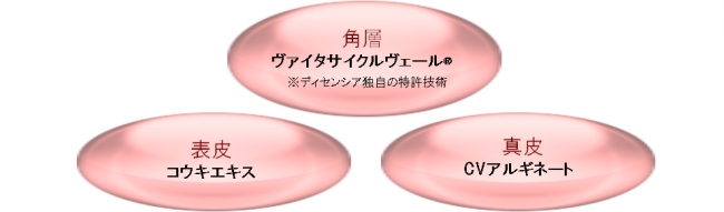 「ストレスがかかると肌が荒れる」そんな現代女性であれば、誰しもが経験のあるお悩みに対し、「ストレスによる肌荒れ」メカニズムに着目し、ストレスからくる皮フ温の低下によって、肌のバリア機能が低下してしまうことを新たに導きだしました。ディセンシアオリジナル複合成分「ストレスバリアコンプレックス」TMにて、心理的ストレスにより肌ダメージに対応してまいります。
