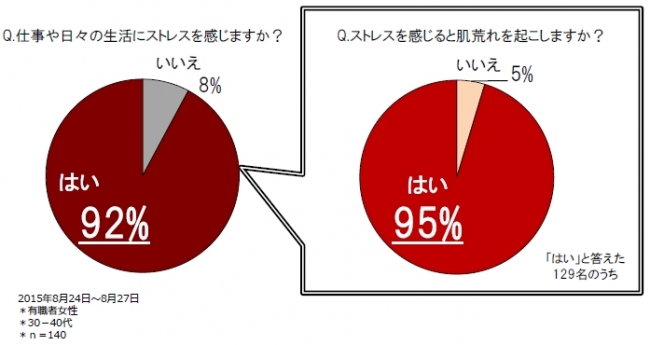 30〜40代の働く女性の9割以上が日々ストレスを感じ、肌荒れを実感!