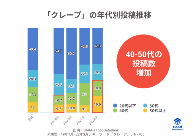 ?「クレープ」投稿は緩やかに増加、40〜50代の投稿数増加が大きい