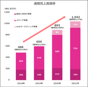 多くの医療専門家監修による、日本最大のPV数を誇る育児支援サイト「ベビーカレンダー」を運営。ベビーカレンダー以外にも、女性のライフスタイルにあわせた情報提供サイトを展開し、事業を拡大中。2021年に東証マザーズ上場。