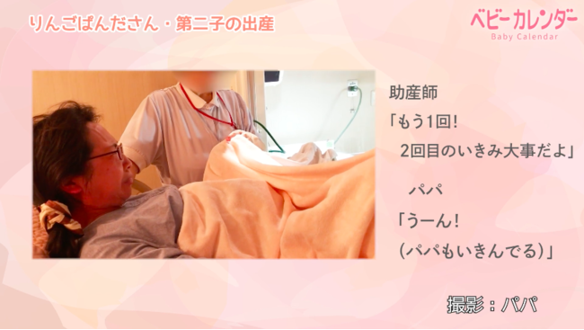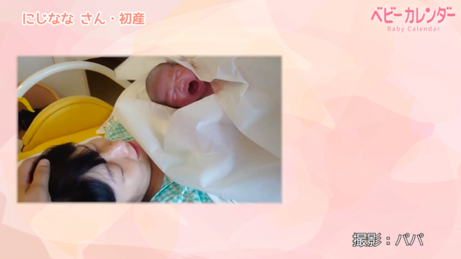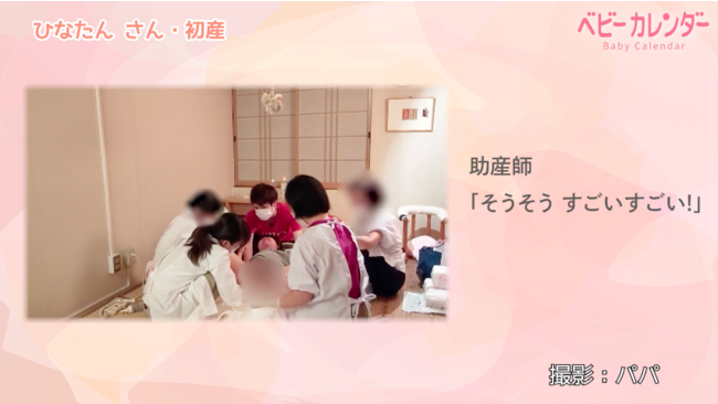 動画では、途中に笑顔でパパと会話する様子も見られ、落ち着いて出産できたことがわかります。