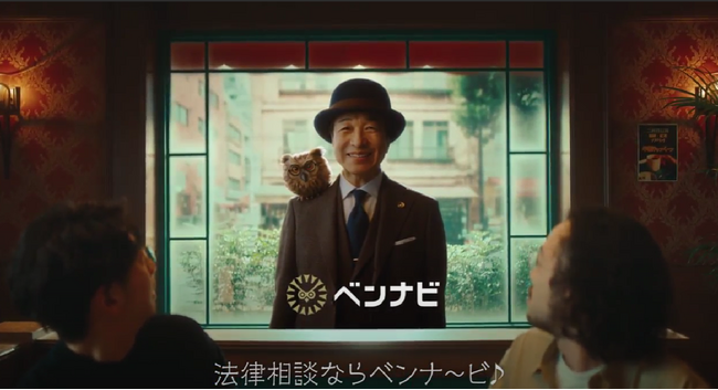 本日から関西地方で放映開始する新CM「ベンナビの歌」篇では、労働問題や離婚問題などの法律トラブルに巻き込まれて困っている人の前に、「法律相談ならベンナ〜ビ♪」と明るく歌いながら小日向さんが登場します。肩に「ベンナビ」のロゴをモチーフにした可愛らしいフクロウの人形を乗せて、小窓から微笑んだ小日向さんが登場する場面は、法律トラブルで悩んでいる人に安心感を与えます。