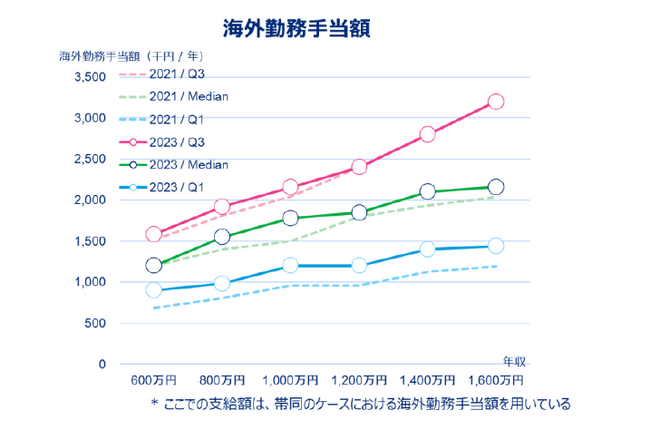 海外勤務手当は25%ileと中央値で前回から上昇傾向