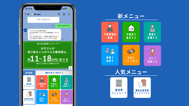 Re:con(リコン)は、「離婚の不安を未来への期待に変える」をPURPOSEとして掲げ、WEBマーケティングやWEBコンテンツの発信といったテクノロジーを通じて、手続きや不安事項が多い「離婚」の課題を解消するサービスです。公式LINEをプラットフォームとして、養育費シミュレーターや必要書類のチェックリスト、専門家の方々への相談など、離婚準備を支援するための様々なツールを提供しています。
