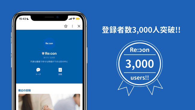 株式会社WonderSpace(本社:東京都港区、代表取締役:山本尚宏、以下「当社」)が手掛ける離婚テック事業のサービス「Re:con(リコン)」のLINE登録者数が、3,000人を突破したことをお知らせします。