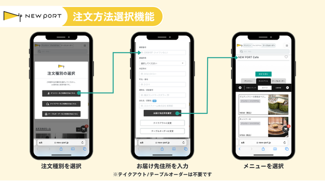 施設特化型モバイルオーダーシステム「NEW PORT」を運営するスカイファーム株式会社(本社:神奈川県横浜市 代表取締役:木村 拓也)は、「デリバリー」「テイクアウト」「テーブルオーダー」など複数の注文方法があるサービスについて、メニュー選択前にそれらを選択できるよう機能改修を実施いたしました。