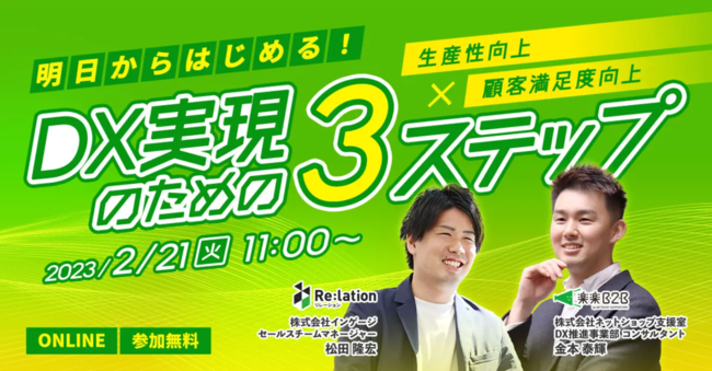 【セミナー開催】Re:lation×楽楽B2B共催セミナー「〜生産性向上×顧客満足度向上〜明日からはじめる!DX実現のための3ステップ」を2月21日(火)に開催いたします