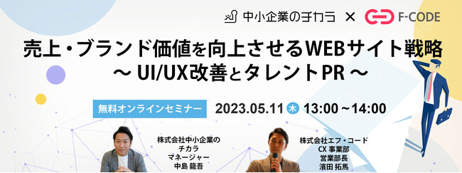 中小企業支援(ブランディング、WEB マーケティング、SDGs支援)事業を行う株式会社中小企業のチカラ(本社:東京都渋谷区、代表取締役社長:山下 佳介、以下「中小企業のチカラ」)( https://smes-chikara.co.jp )は株式会社エフ・コードと「売上・ブランド価値を向上させるWEBサイト戦略」について2023年5月11日(木)13時よりウェブセミナーを開催いたします。