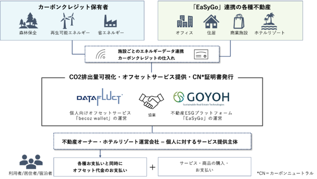 環境価値流通プラットフォーム「becoz」とGOYOHの不動産ESGプラットフォーム「EaSyGo」を組み合わせ、不動産利用に伴うCO2排出量を可視化・環境価値を創出