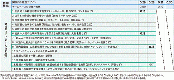 ⇒いずれも社内越境とは関連がなく、他部署とのつながりを活性化させるには「気軽な話題づくり」よりは「関係的な職務をデザイン」する方が効果的といえそうだ。