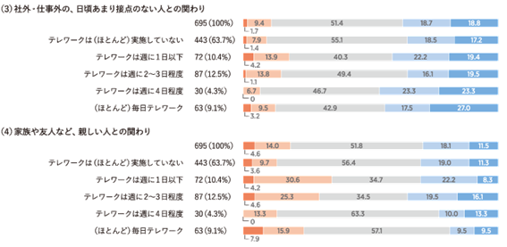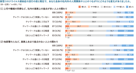 図表1 コロナ禍以前と比較した人との関わりの変化(テレワーク実施頻度別)