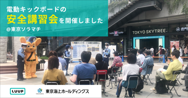 株式会社Luup(本社:東京都渋谷区、代表取締役社長兼CEO:岡井大輝、以下「Luup」)は、電動キックボードの安全講習会を2022年5月20日(金)に東京ソラマチ ソラマチひろば(東京都墨田区押上1丁目1 西側出口前 ソラマチ商店街 東京ソラマチ 1F)にて開催しました。当日は東京海上ホールディングス(本社:東京都千代田区、取締役社長グループCEO:小宮暁)と本所警察署及び向島警察署の協力を得て、電動キックボードの正しい交通ルールのレクチャーや安全な走行方法をお伝えし、実際に試乗いただく講習会を行いました。