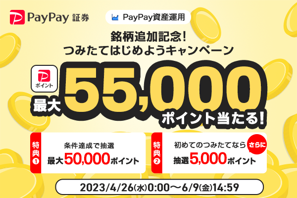 ・キャンペーンの詳細についてはこちら(https://www.paypay-sec.co.jp/campaign/asset/2304.html?utm_source=pressrelease&utm_medium=partner&utm_campaign=tsumitate_202304&utm_term=PRtimes)をご確認ください