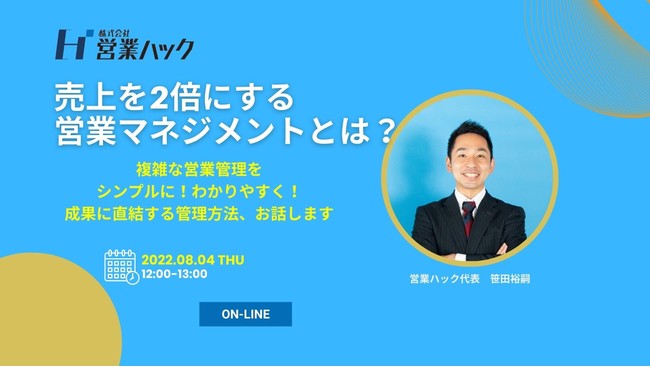 売上を2倍にする営業マネジメントとは?複雑な営業管理をシンプルに!わかりやすく!解説します|ランチタイムウェビナー開催|8/4(木)12時〜