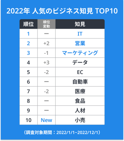 (1)2022年 人気のビジネス知見TOP10 ITが不動の一位、小売が初ランクイン