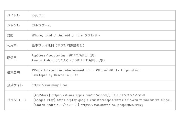 『みんゴル』は、「プレイステーション」を代表する作品の1つであり、世界シリーズ累計実売本数が1,400万本(※2)を超える国民的ゴルフゲーム「みんなのGOLF(以下、みんGOL)」シリーズのスマホ向けゴルフゲームです。引き続き、『みんゴル』に関する情報を公式サイトやSNSなどでもお届けしてまいります。