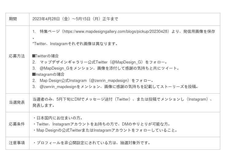 ・マップデザインギャラリー公式Twitterアカウント:https://twitter.com/MapDesign_G