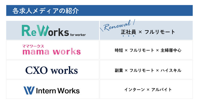 この社会的な流れに対応し、「リワークス」では完全フルリモートの正社員求人のみを掲載し多様な働き方のニーズに応える支援サイトとして生まれ変わります。