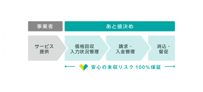 「あと値決め」は、17年以上の実績を持つ業界No.1の後払い決済サービスを提供する当社が新しく開発した仕組みです。既存の後払いサービス同様、「あと値決め」の運用にかかる負荷や未回収のリスクは当社が全面的に代行・保証するため、導入事業者は手間なく安心安全に、ポストプライシングの体験を消費者に提供することが可能です。
