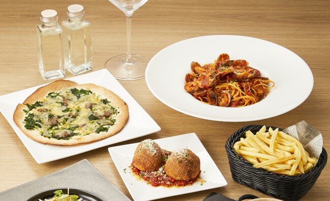 人気No.1メニュー「千葉県産上総和牛のローストビーフ〜生うに乗せ〜」や、4種類から選べる「おつまみピッツァ」、イタリアンに和のアレンジを加えた「キャベツと塩昆布のペペロンチーノ」、人気のおつまみを盛り合わせにした「おつまみ盛り合わせ」など、厳選した17品のメニューをラインナップしました。